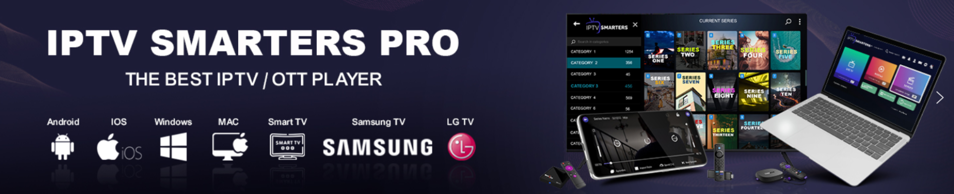 Smarters Pro ist ein fabelhafter Videoplayer, der es Endbenutzern ermöglicht, ihre Inhalte wie Live TV, Movies und Series auf ihren Geräten anzusehen. Es unterstützt mehrere Plattformen, darunter Android, iOS, Windows, MacOS, Web-Browser, Smart-TVs usw. Smarters Pro ist kompatibel mit verschiedenen Wiedergabelisten wie Player API Based Playlist, 1-Stream Panel API und M3U Playlist / URL.