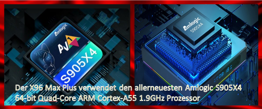 Der X96 Max Plus ULTRA verwendet den allerneuesten Amlogic S905X4 64-Bit Quad-Core ARM Cortex-A55 1.9GHz Prozessor, der für seine exzellente Produktionsqualität bekannt ist und daher in vielen